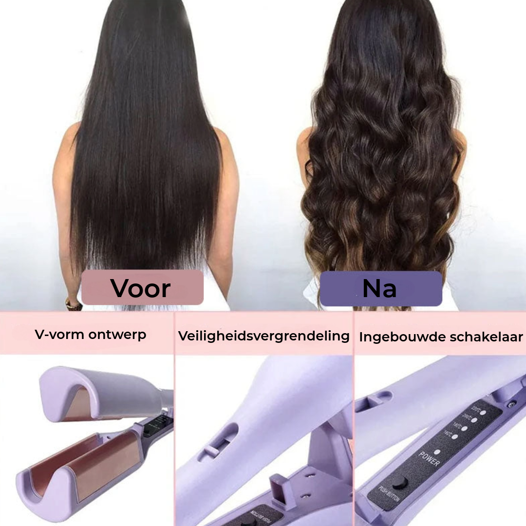 De diepe V-vormige golven zakken niet uit zoals gewone krullen. Je geniet van langdurig volume en elegantie in elke beweging – zonder haarlak of touch-ups. De ultieme tool voor moeiteloos mooi haar, elke dag opnieuw.